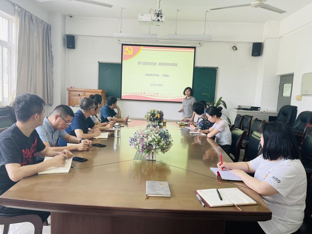 7月8日,副校长王菊霞为机关党委学团党支部党员讲授党史学习教育专题党课。