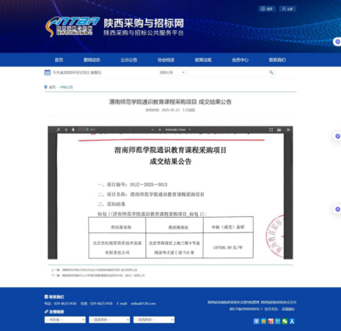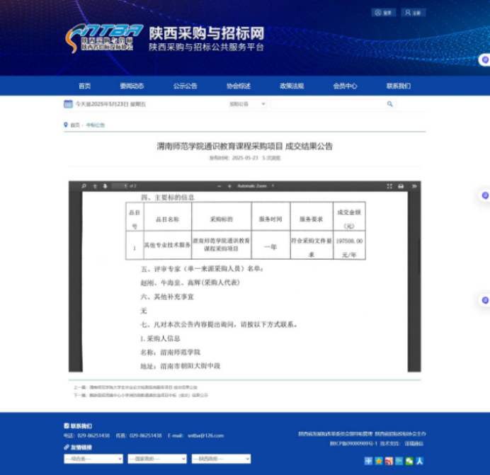 best365中国官方网站通识教育课程采购项目成交结果公告