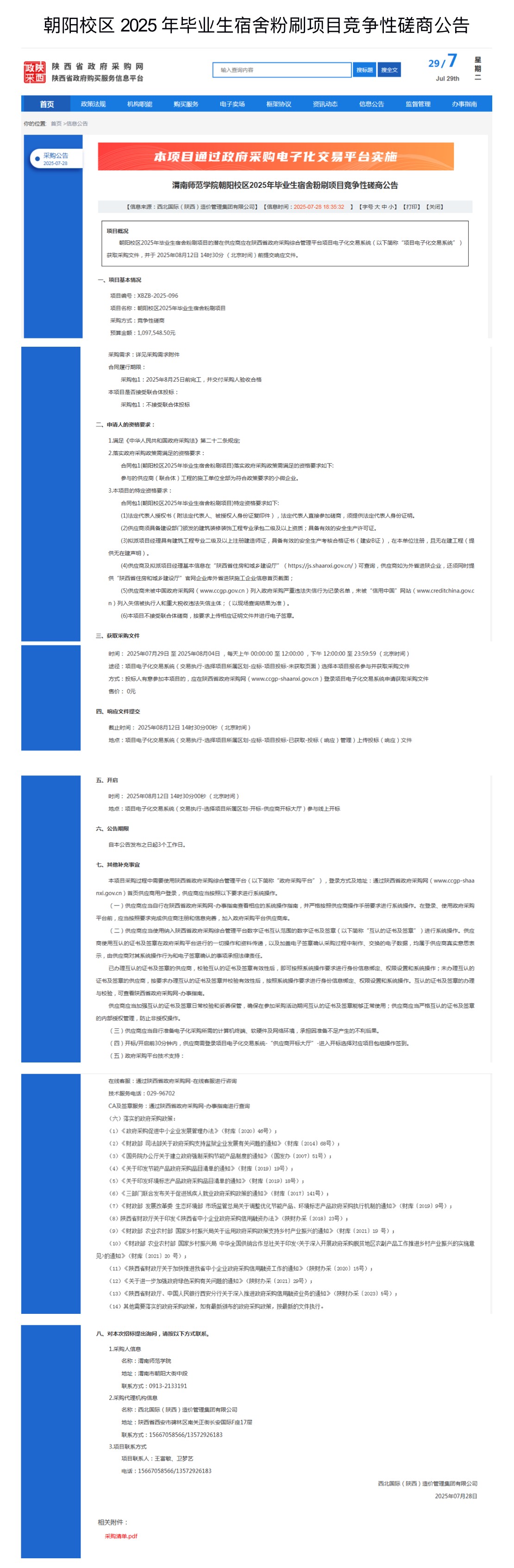 朝阳校区2025年毕业生宿舍粉刷项目竞争性磋商公告