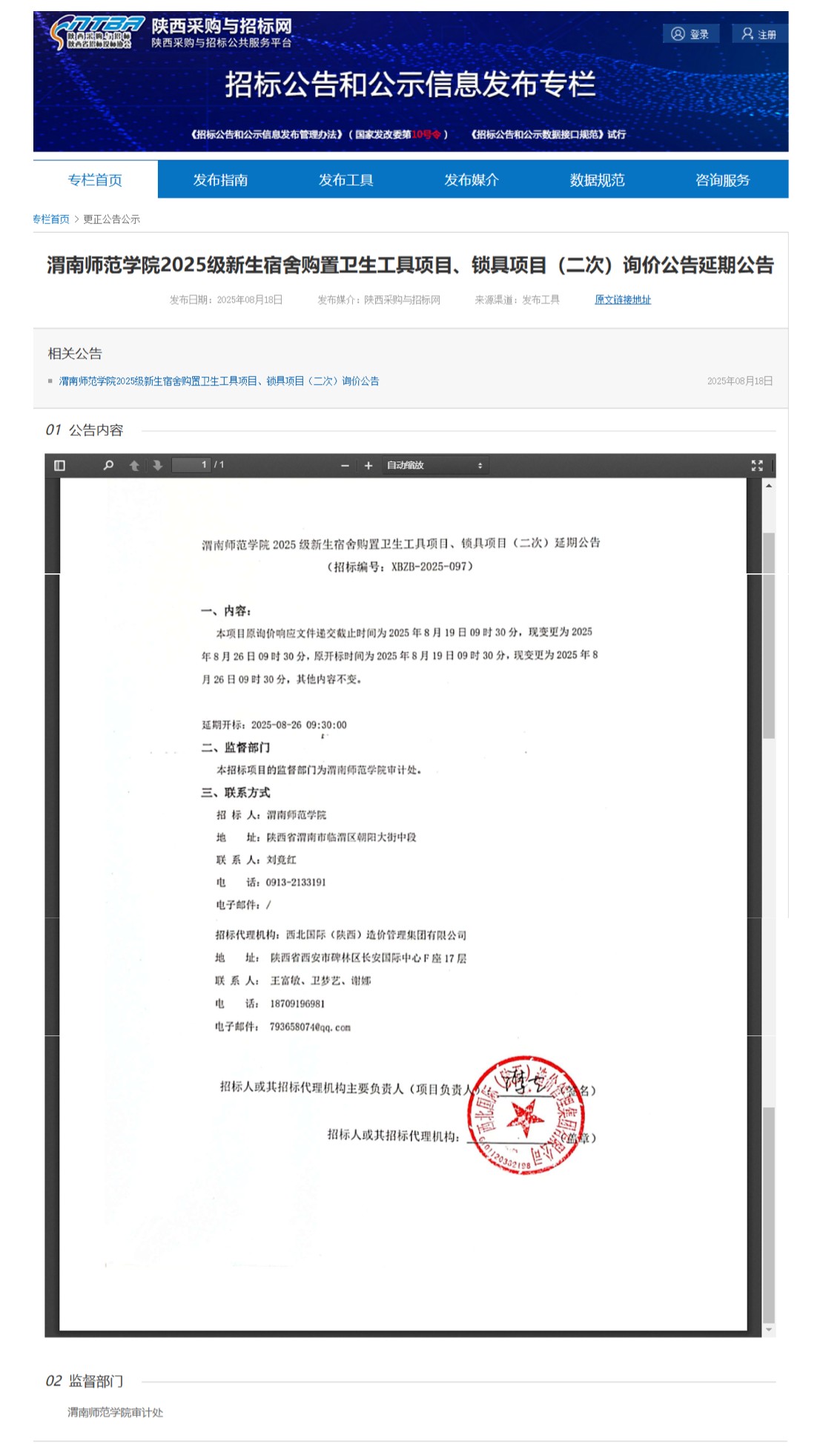 best365中国官方网站2025级新生宿舍购置卫生工具项目、锁具项目(二次)询价公告延期公告