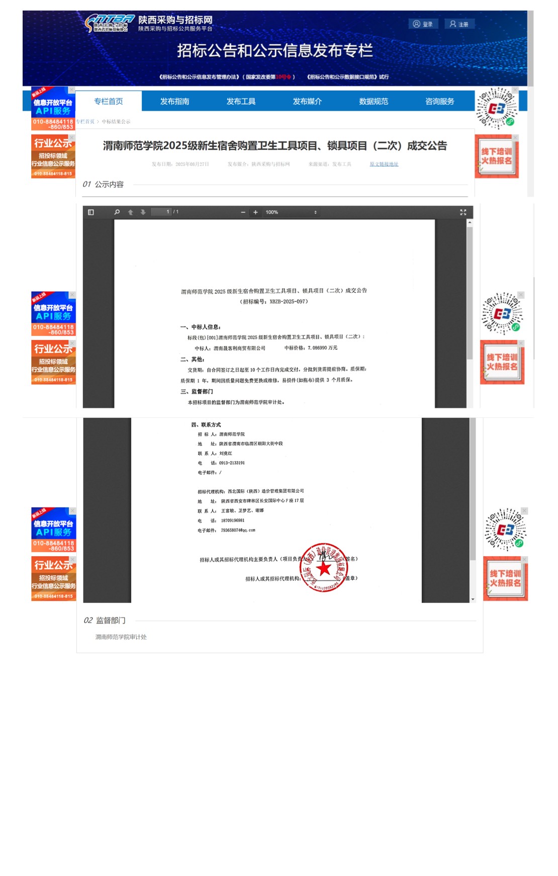 best365中国官方网站2025级新生宿舍购置卫生工具项目、锁具项目(二次)成交公告