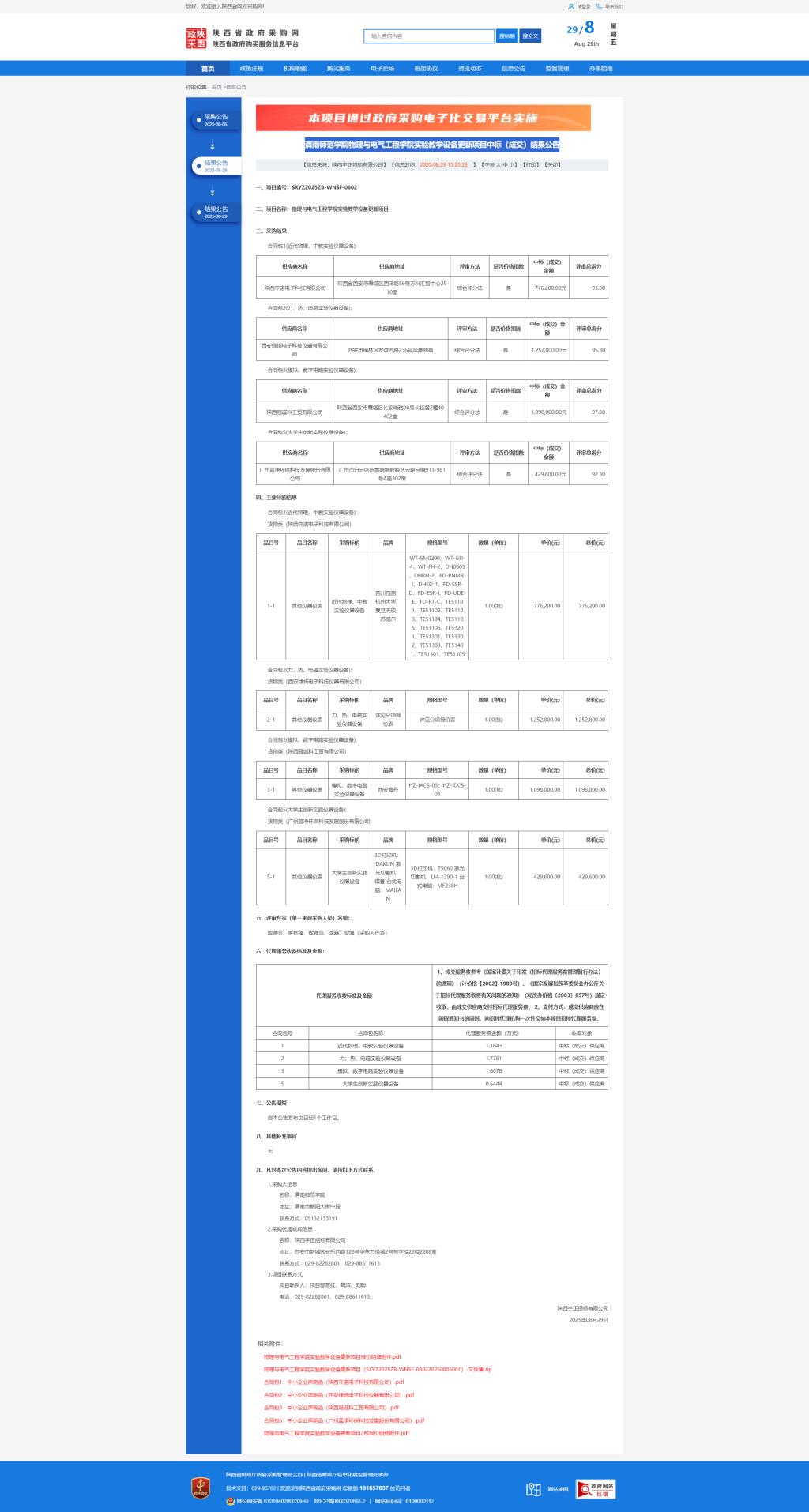 best365中国官方网站物理与电气工程学院实验教学设备更新项目中标(成交)结果公告