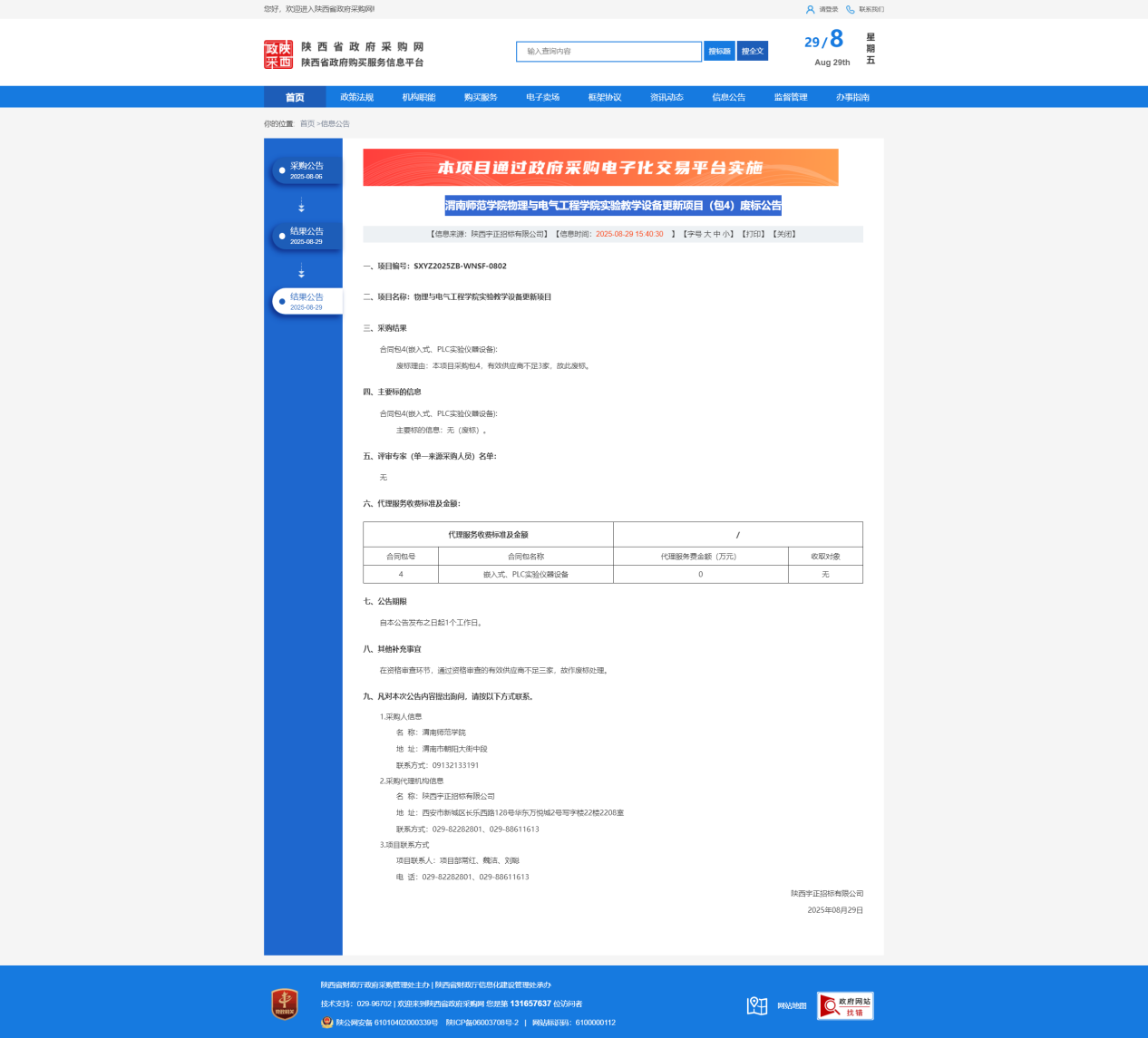 best365中国官方网站物理与电气工程学院实验教学设备更新项目中标(成交)结果公告
