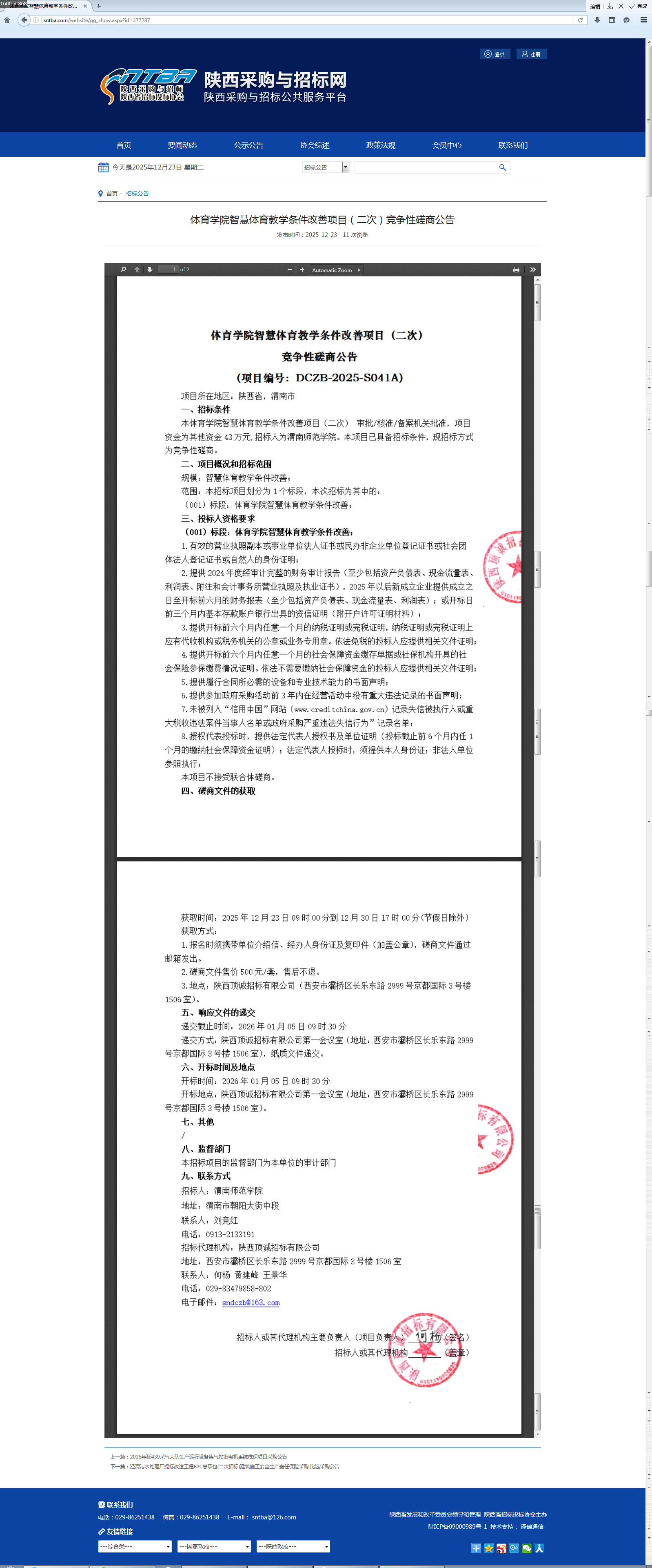体育学院智慧体育教学条件改善项目(二次)竞争性磋商公告
