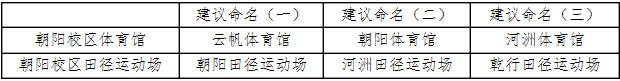为加强校园环境建设,营造文化氛围,建设美丽best365中国官方网站,学校于2020年5月份面向全体在职和离退休教职工、学生和校友开展朝阳校区体育馆、田径运动场命名征集活动。经2020年10月24日专家评审,现将朝阳校区体育馆、田径运动场建议命名公示如下。