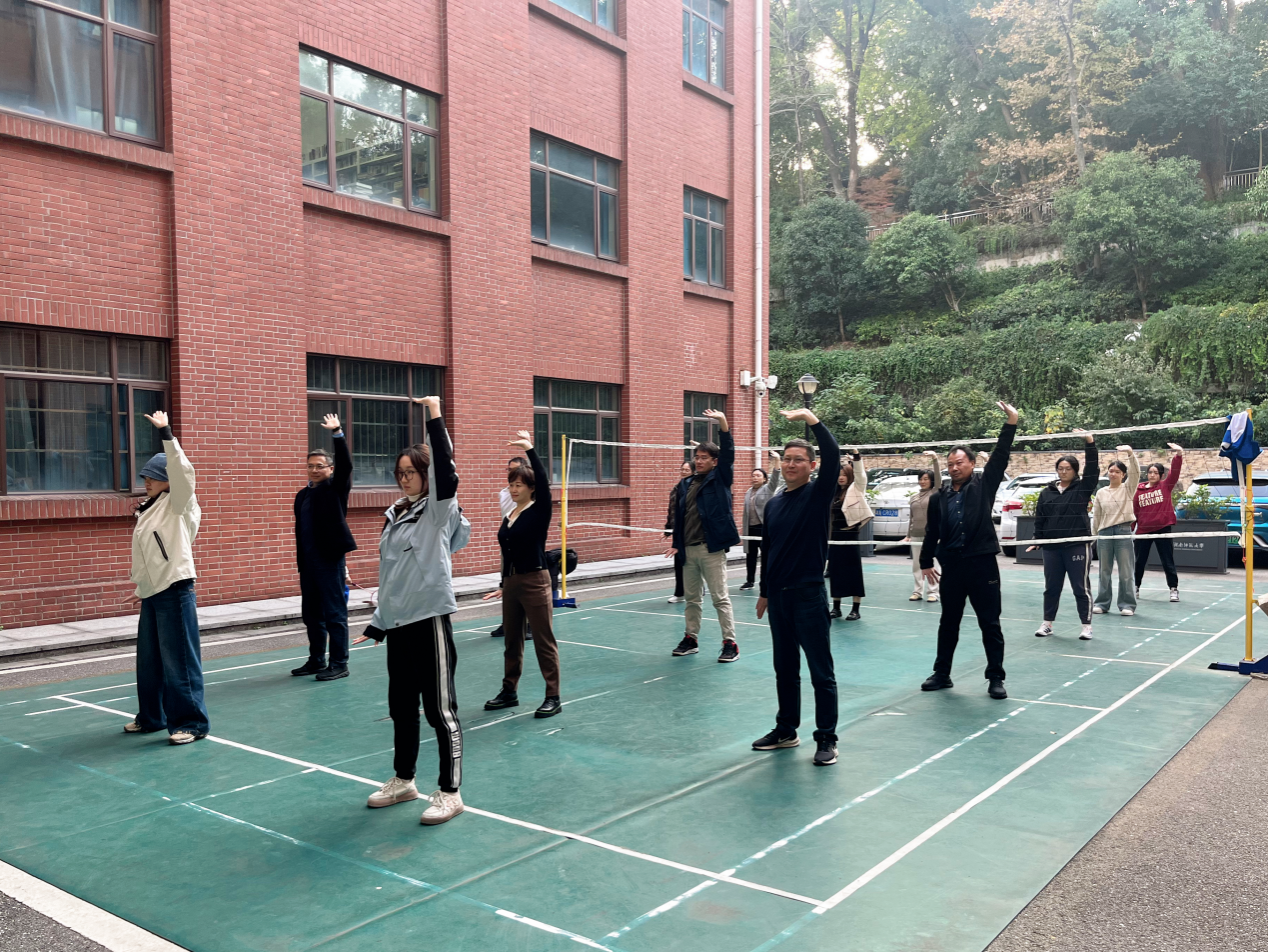 作为兼具文化传承与科学健身价值的传统功法,八段锦柔和舒展的动作特性对改善教职工久坐导致的肩颈僵硬等职业健康问题具有显著效果。全体院领导与党员骨干率先垂范,坚持每日练习,“双手托天理三焦”“摇头摆尾去心火”等招式演练整齐划一,有效缓解了工作疲劳,提升了工作效率。