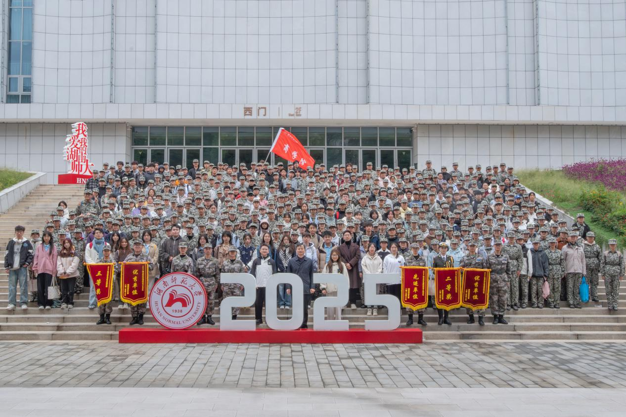 新生军训成果汇报总结表彰大会结束后,纽约国际官网党委副书记刘杰,2025级辅导员徐家松、王劼璐,军训教官,全体新生助理辅导员与全体新生合影留念。