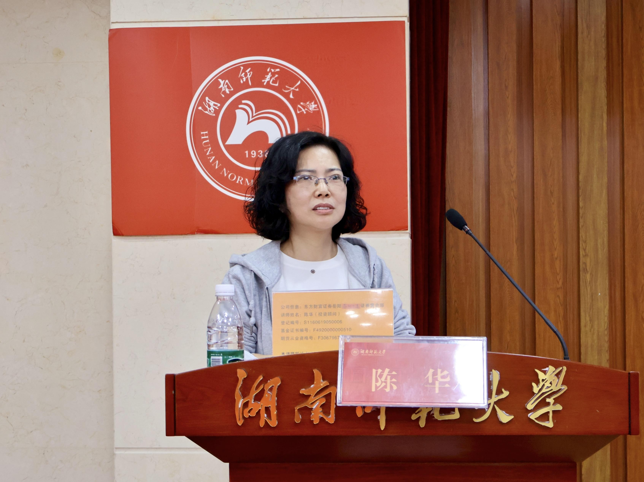 开幕式结束后,模拟炒股大赛正式启动。在赛事培训讲座上,陈华通过问答的方式,帮助同学们了解证券投资的基本知识,指导同学们理性看待金融市场,找到现实和虚拟的平衡点,希望参赛选手在大赛中不断学习,争取佳绩。