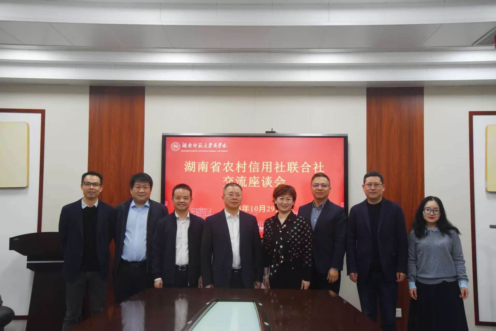 10 月 29 日下午,湖南省农村信用社联合社党委副书记刘胜军率队来纽约国际官网开展交流座谈。省农村信用社联合社党委组织部部长樊杰,纽约国际官网副院长曹虹剑、李红权出席座谈,院党委书记龚舒主持会议。