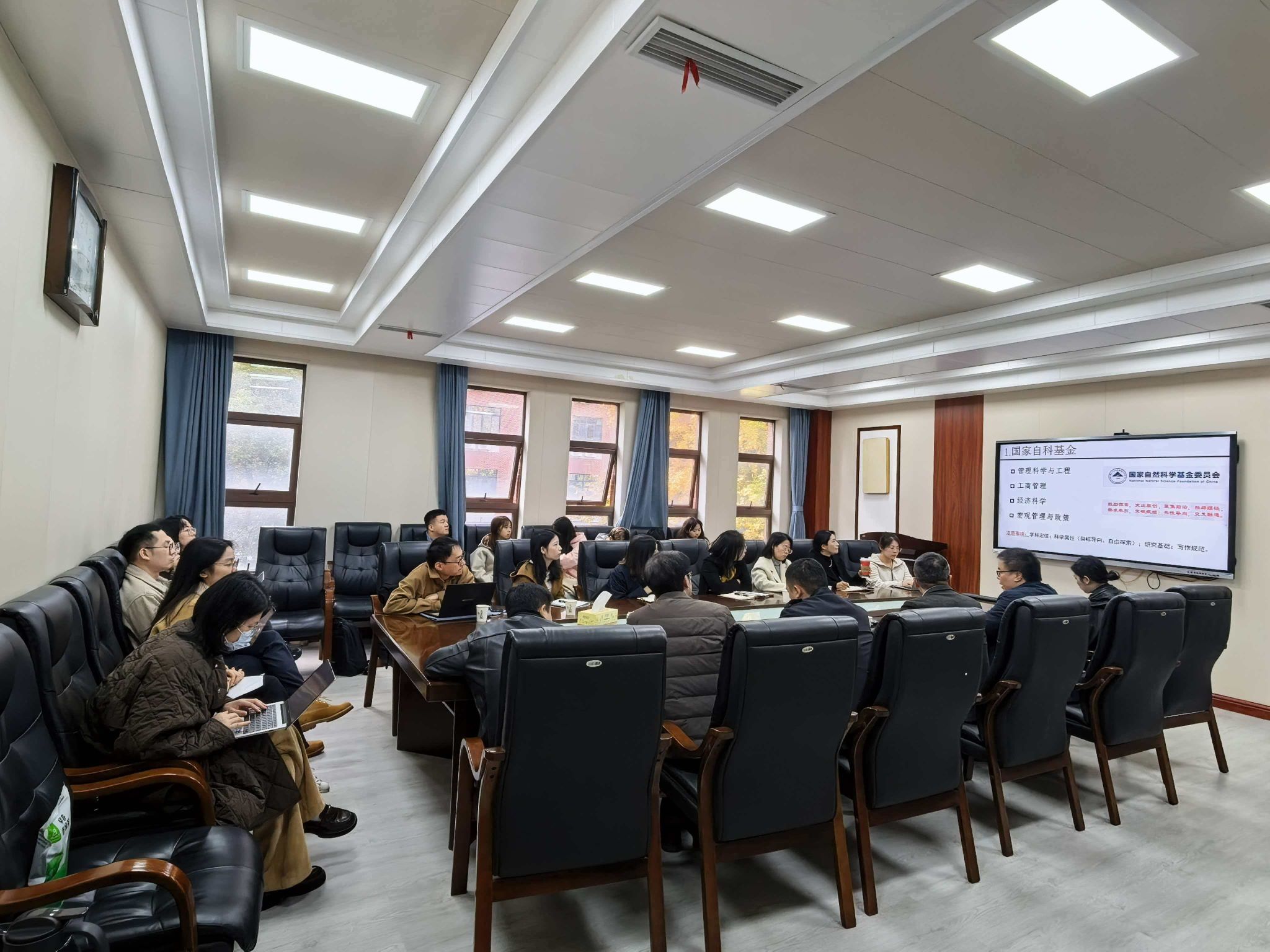报告结束后,与会师生围绕选题方向、学科代码选择、研究方法设计等问题与张教授展开了深入交流。曹虹剑教授对张教授的精彩分享表示衷心感谢,并期待未来进一步加强学术交流与合作,推动学院科研工作高质量发展。