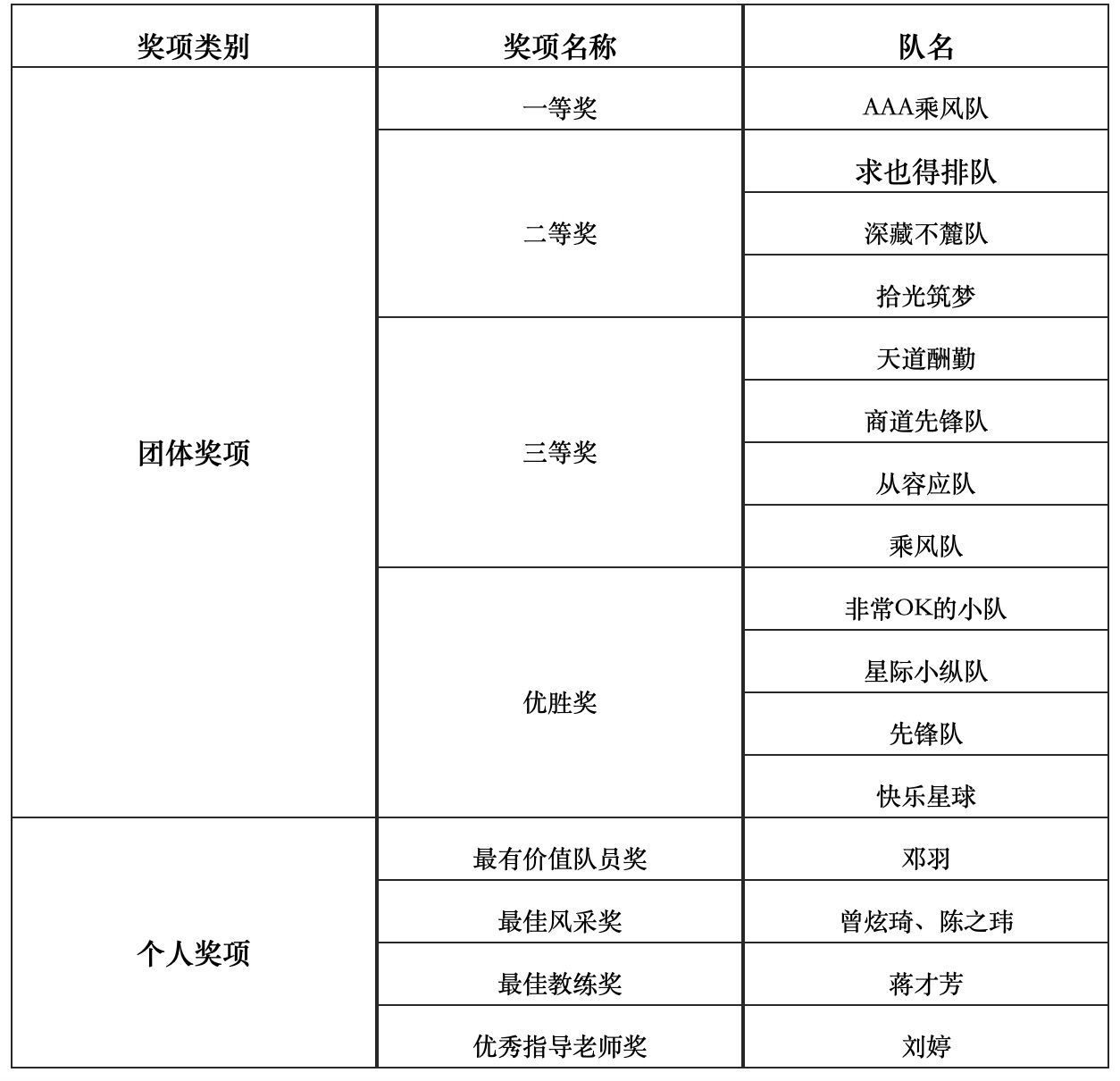最佳教练奖 优秀指导老师奖
