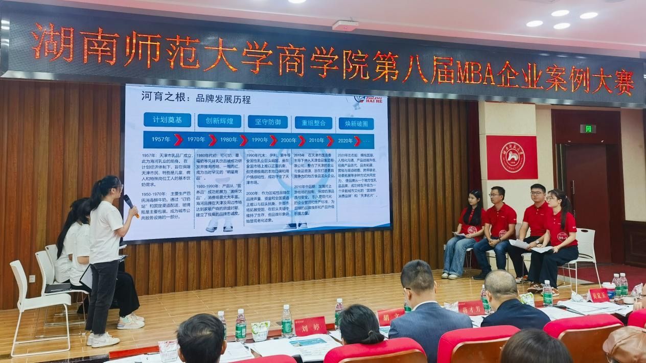 大赛以“津门乳企焕新章:海河老字号的品牌活化之路”为题,旨在通过深入剖析海河乳品的发展困境、产品创新与战略选择,引导MBA学员学以致用,将课堂所学应用于实际商业情境中,提升他们的战略思维、团队协作和问题解决能力。在比赛过程中,各参赛队伍充分展示了他们对乳品行业的深入洞察,以及对海河乳品未来发展的独到见解。