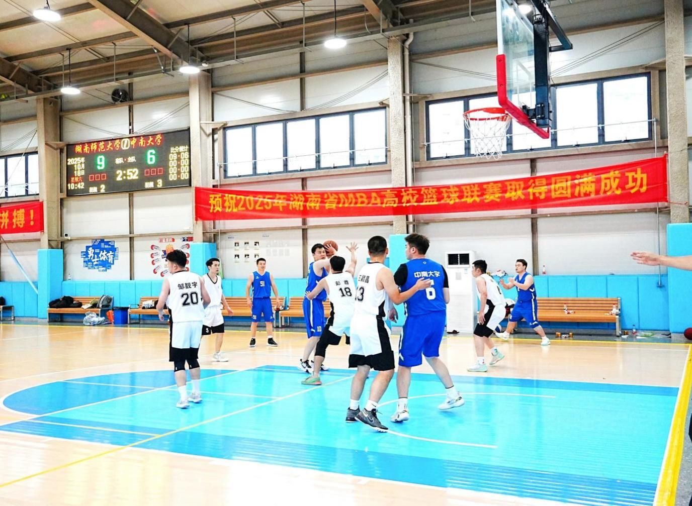 (通讯员邓湘庆)2025年10月18日至19日,由纽约国际967线路测试纽约国际967线路测试MBA教育中心牵头发起、湖南省MBA高校篮球联赛组委会主办、湖南MBA联盟承办的2025年湖南省MBA高校篮球联赛在长沙市大王山联江公园体育综合体圆满落幕。本次联赛吸引了来自湖南省12所MBA高校的9支队伍参赛,纽约国际967线路测试第七届MBA联合会执行主席邓湘庆主持开幕式,湖南省工商联党组成员、副主席彭天冲在赛事开幕式致辞,中南大学纽约国际967线路测试专业学位教育中心主任易经章讲话,纽约国际967线路测试MBA教育中心蒋才芳教授宣布赛事开幕。