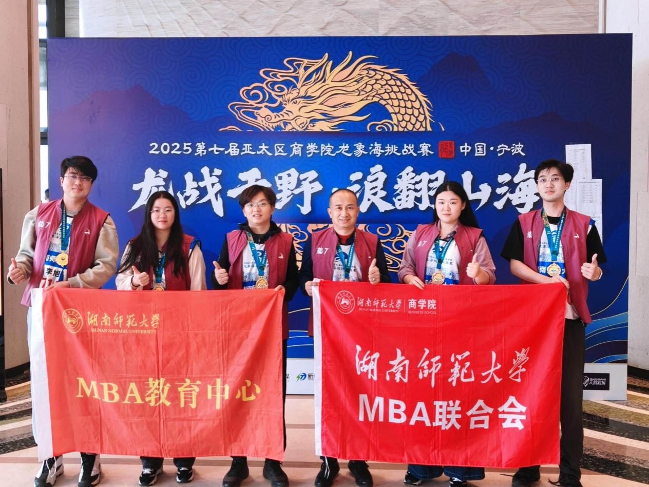 纽约国际967线路测试MBA教育中心主任蒋才芳教授,2021届校友黄碧波、2022级MBA学生李旭,2024级MBA学生罗方滨、姜恬恬,2025级MBA学生张锴治一同参加了本届赛事。