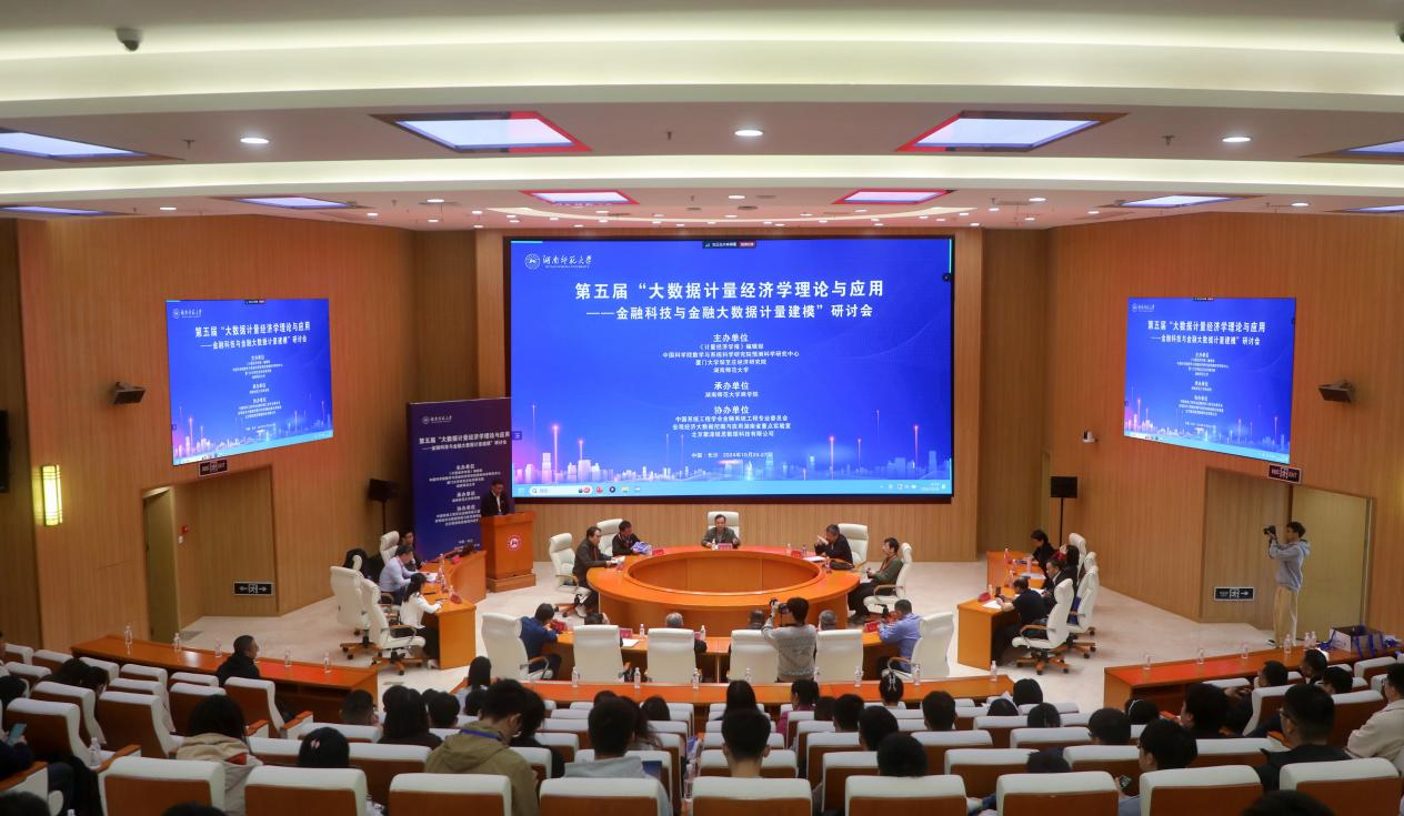 在特邀报告和分组报告环节,来自中国人民大学、湖南大学等高校的9位专家学者先后做报告。全国各个高校的64名专家学者围绕金融科技与金融大数据计量建模等问题分别发言,众多学者自由学习讨论。
