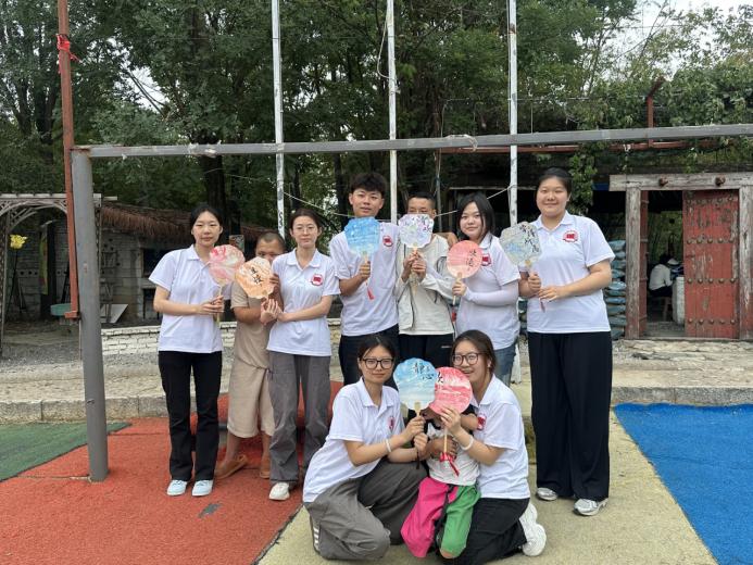 近日,best365中国官方网站莫斯科艺术学院“心系折翼天使 用爱共助成长”社会实践团走进鄠邑区残障人士农疗基地,开展了一场以非遗文化体验为核心的活动。依托学院“丝路艺创”辅导员工作室联合创新的新课程“非遗小课堂”,实践团为基地的孩子们带来了漆扇绘制、青花瓷贴画创作、彩绘葫芦及扎染等丰富多样的体验项目,用艺术之美传递温暖与力量。