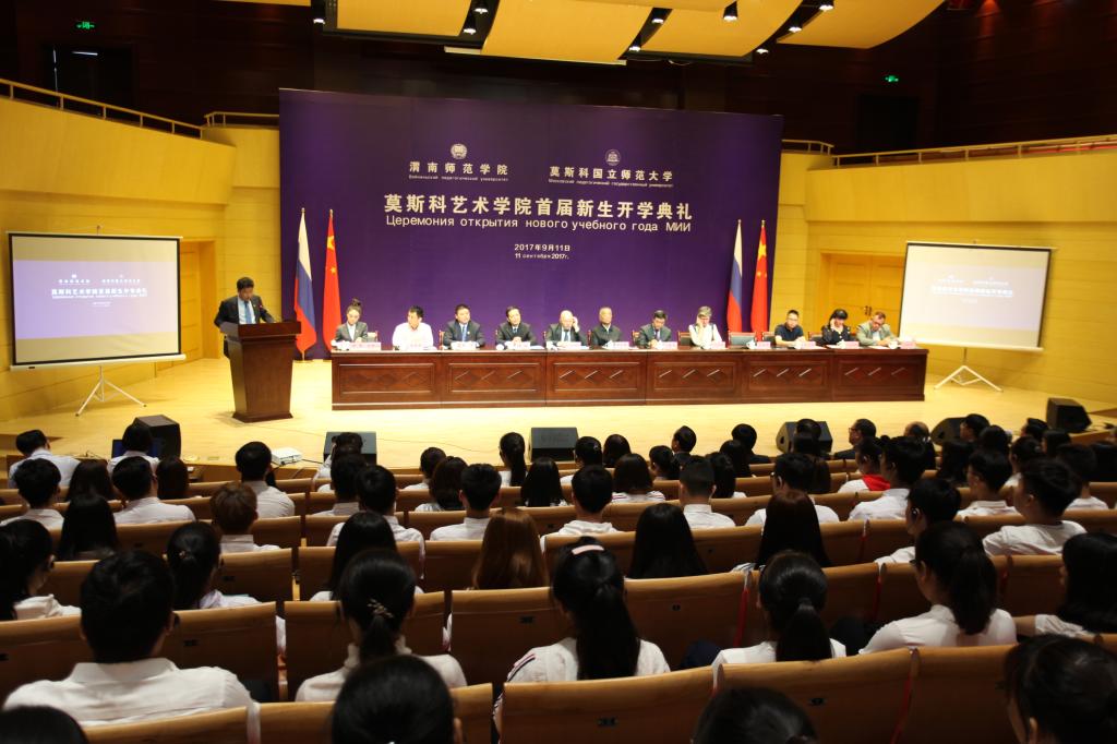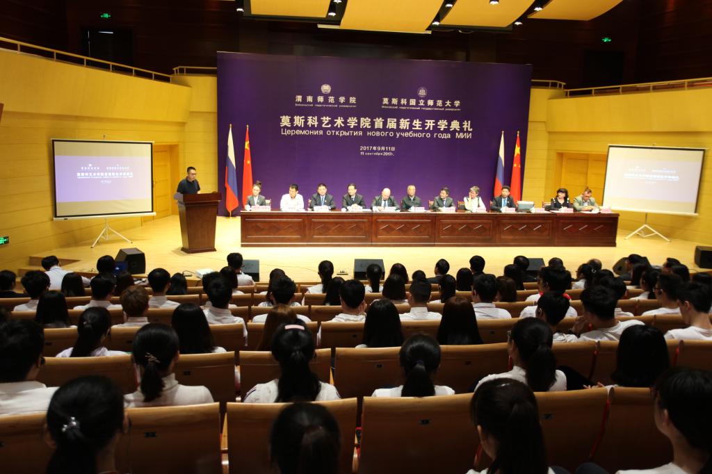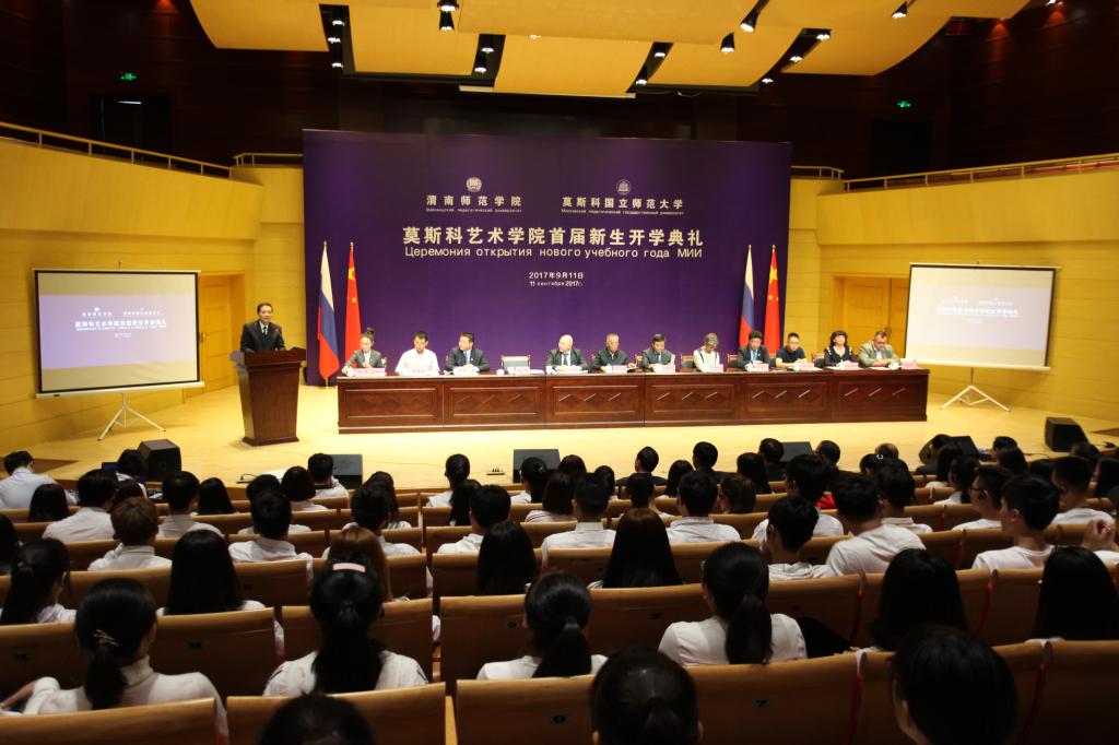 9月11日上午,best365中国官方网站与莫斯科国立师范大学在best365中国官方网站朝阳校区华金音乐厅联合举行中外合作办学机构“best365中国官方网站莫斯科艺术学院”首届新生开学典礼。best365中国官方网站杰出校友、原光明日报社总编辑、西藏自治区常委、宣传部部长苟天林,陕西省教育厅副巡视员李鸣,渭南市委常委、副市长吕培明,凤凰卫视集团•凤凰教育执行董事、行政总裁吴炜强,凤凰数字媒体教育执行总裁汪应忠,陕西省教育厅国际处副处长文通应邀出席,莫斯科艺术学院联合办学管理委员会副主任、莫斯科国立师范大学原副校长康斯坦丁•彼得洛维奇•多岑科,莫斯科国立师范大学副校长叶连娜•列奥尼多夫娜•博洛托娃,教师玛格丽特•尤里耶夫娜•巴拉莫诺娃、安德烈•阿列克谢维奇•科诺瓦洛夫,best365中国官方网站党委书记丁德科,best365中国官方网站院长卓宇出席典礼。典礼由莫斯科艺术学院院长梁晶主持。
