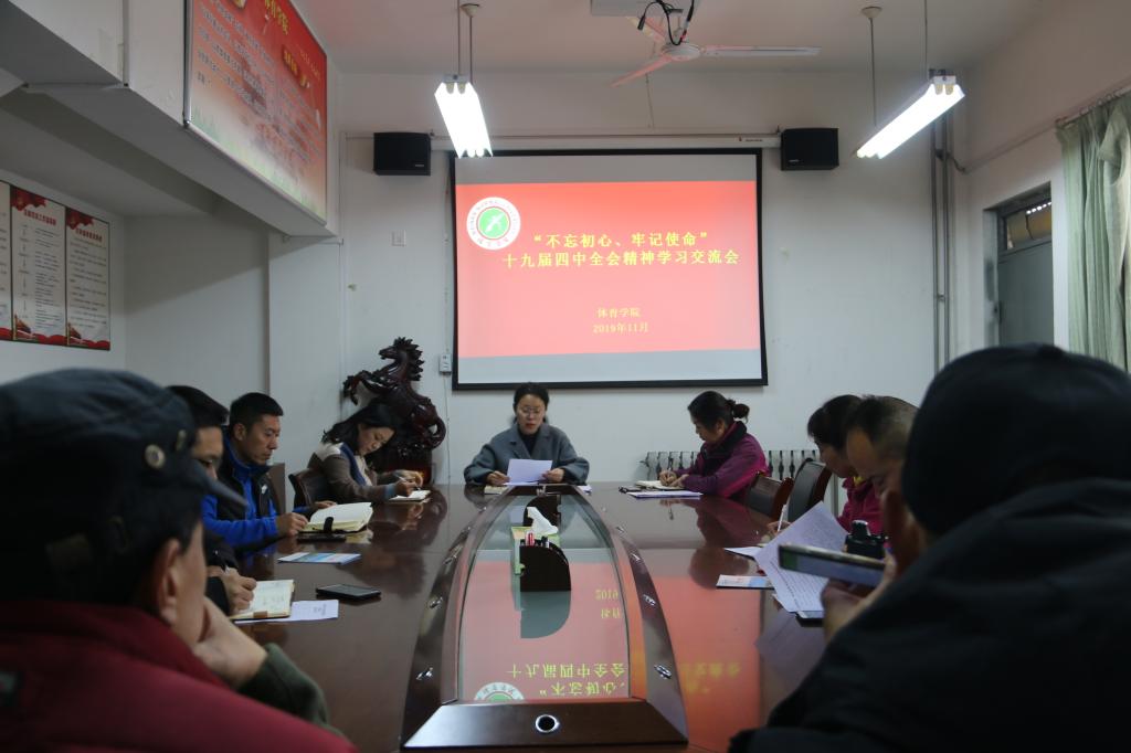 为了深入学习贯彻习近平新时代中国特色社会主义思想,学习贯彻十九届四中全会精神,扎实推进“不忘初心、牢记使命”主题教育,体育学院组织开展了十九届四中全会精神专题学习系列活动,组织全体师生通过集中学习、自学、观看视频、集体讨论等形式学习贯彻十九届四中全会精神。先后于11月6日、11月7日、11月21日召开三次专题学习讨论会,并于12月2日举办“学习心得体会展”等活动,于12月4日举办专题宣讲报告会。通过一系列学习贯彻活动,师生更加深刻领会十九届四中全会的意义和精髓,深刻感受到祖国的强大,进一步坚定了道路自信、理论自信、制度自信和文化自信,更加坚定了理想信念,明确了行动目标。(通讯员 王斌 裴亚男)