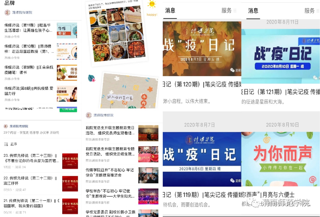 传媒学院党总支紧扣融媒体时代节拍,实体与网络阵地并举,“互联网+党建”成效突出,带领学院新媒体团队,围绕青年思想培育、教师师德塑造、党员信念淬炼等主题,创设帮助学生成长的“为你而声”、促进教师发展的“传媒师说”、引导师生居家抗疫的“抗疫日记”、深化党史学习教育的“传媒先锋说”等品牌专栏。共推送原创党史感悟、教育心得、抗“疫”精神等精品文章300余期。