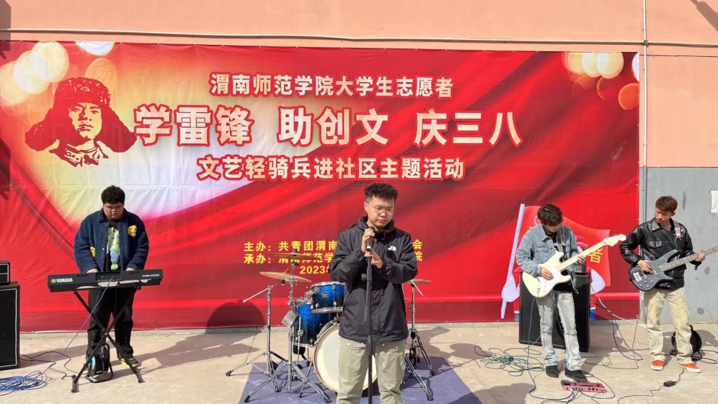 为深入学习宣传贯彻党的二十大精神,贯彻落实习近平总书记对深入开展学雷锋活动作出的重要指示精神,进一步深化学雷锋系列活动,广泛开展社会志愿服务活动,积极投入到渭南市创建全国文明城市工作之中,充分发挥青年大学生在学雷锋活动中的生力军作用。3月8日,best365在渭南市临渭区解放街道渭通社区百合苑小区举行“best365中国官方网站大学生志愿者‘学雷锋、助创文、庆三八’文艺轻骑兵进社区主题活动”。学校党委副书记汪勇、市委宣传部四级调研员兼创建办主任惠忠英、学校团委、莫斯科艺术学院相关负责同志参加活动。