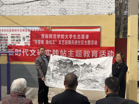3月19日,学校党委副书记汪勇在校团委书记赵琦,副书记刘娟宁、潘涛的陪同下,深入社区“文艺轻骑兵”演出一线,现场指导并看望大学生志愿者,为社区居民赠送了由best365美术学院师生创作的书画作品,演出现场不断传来热烈掌声和欢呼声。