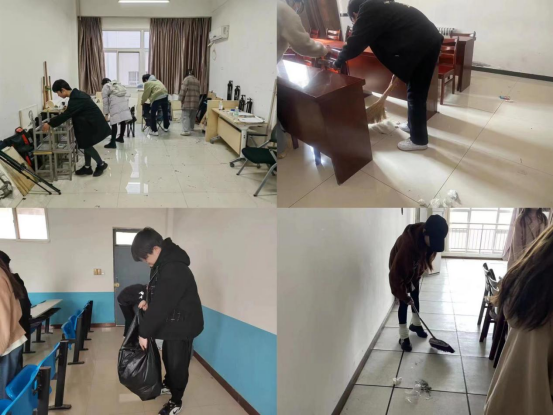 活动中,学院师生们不怕脏、不怕累,充分发扬了团结互助、齐心协力的精神,对道路两旁的落叶和垃圾进行清理,并仔细检查草丛,不放过任何一个卫生死角,同时也对教室和办公室进行了深度清洁。