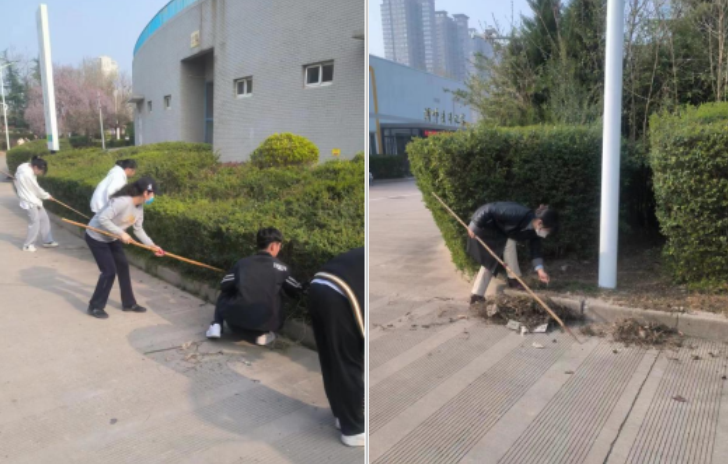 大家在各位老师的带领下分工明确,有条不紊、认真细致,干劲十足,有用铁爬搂的、夹子夹的、扫把扫的,够不着的地方大家拿来了特殊工具,把所有的死角打扫的干干净净,在大家齐心协力、共同努力,经过两个多小时的彻底清扫,校园环境焕然一新。