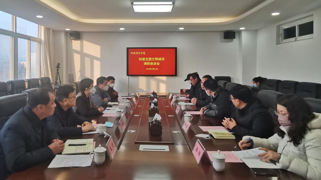 党委委员、宣传部部长李明敏向调研组汇报了近年来学校创建工作的思路举措、亮点成效以及存在的主要问题和今后努力的方向,总结了学校创建工作“抓日常、抓整改、抓落实”的工作特点和良好做法,表示要切实做好创建各项工作,持续巩固好创建成效,为渭南市创建全国文明城市贡献力量。