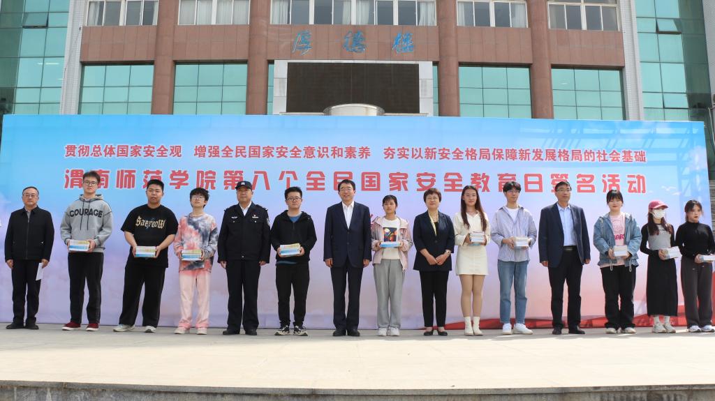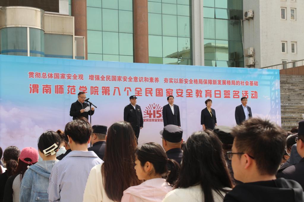 4月12日下午,学校联合渭南市公安局等相关单位,在朝阳校区举办第八个全民国家安全教育日签名活动。渭南市公安局党委委员、副局长宁双喜,best365校长张守华,党委副书记韩小卫、袁亮等出席活动。