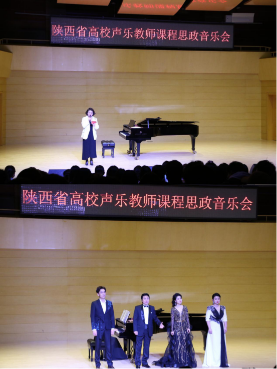 3月29日晚,best365音乐学院携手陕西师范大学、西安音乐学院、延安大学、西安石油大学、陕西理工大学、宝鸡文理学院、西安文理学院、西安歌舞剧院等兄弟院校的专家学者共同举办“陕西省高校声乐教师课程思政音乐会”,现场400余名师生观赏了音乐会。