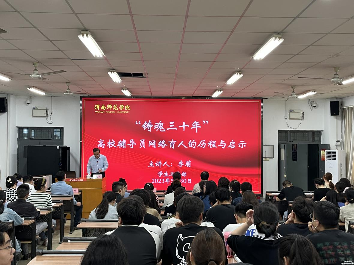 为深入学习宣传贯彻习近平新时代中国特色社会主义思想和党的二十大精神,全面贯彻落实全国教育大会、全国高校思想政治工作会议精神,积极营造best365大学生思想教育的良好氛围,扎实做好网络思想政治教育工作,全面提升学校网络育人质量。5月30日下午,学生工作部邀请陕西高校网络思想政治工作中心办公室主任、陕西省高等学校思想政治教育研究会常务副秘书长、陕西科技大学网络思想政治工作中心主任李萌做“铸魂三十年——高校辅导员网络育人的历程与启示”专题报告。报告会由学校党委副书记袁亮主持。