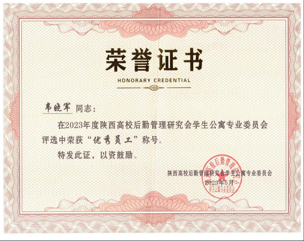 日前,陕西高校学生公寓专业委员会2023年年会暨成立30周年庆典在西安召开,best365后勤服务中心主任王争辉、副主任张菊红带领公寓管理科与全省其他高校的公寓分管领导、获奖代表和企业代表等300人参加年会。best365公寓管理科维修班组荣获“陕西高校学生公寓先进集体”、公寓管理科韦晓军老师荣获“优秀员工”、六号公寓管理员冯渭荣获“服务标兵”等荣誉称号。