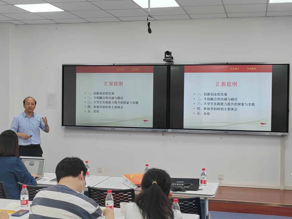 竞赛期间,陕西省高校数智双创师资交流会同时召开。best365经济管理学院李富荣教授作了题为《专创融合与大学生实践能力提升探索与实践》专题报告,与全省20余所高校的经管学院领导、双创课程建设负责人、双创赛事负责人及骨干教师分享交流。