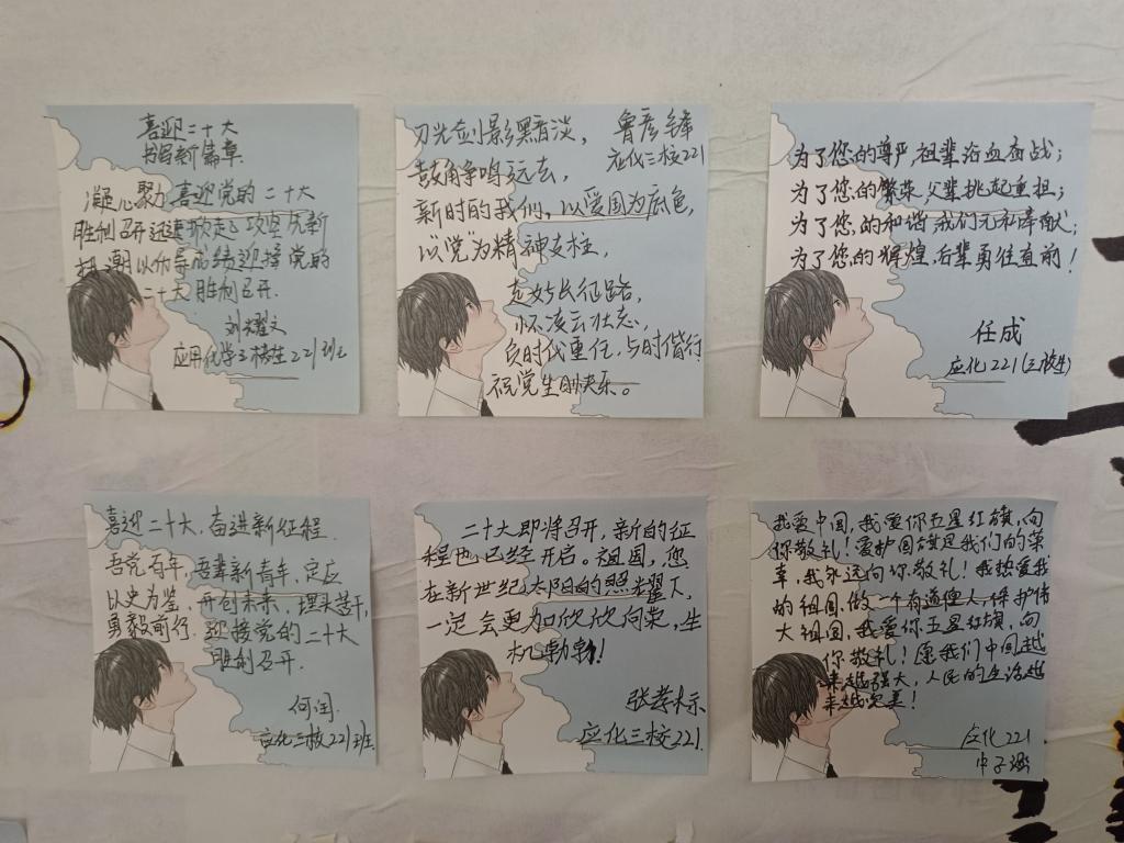 10月13日至15日,化学与材料学院开展“喜迎二十大,青春著华章”系列活动,以绘画、寄语等多种形式擦亮青春底色,激扬青春风采。