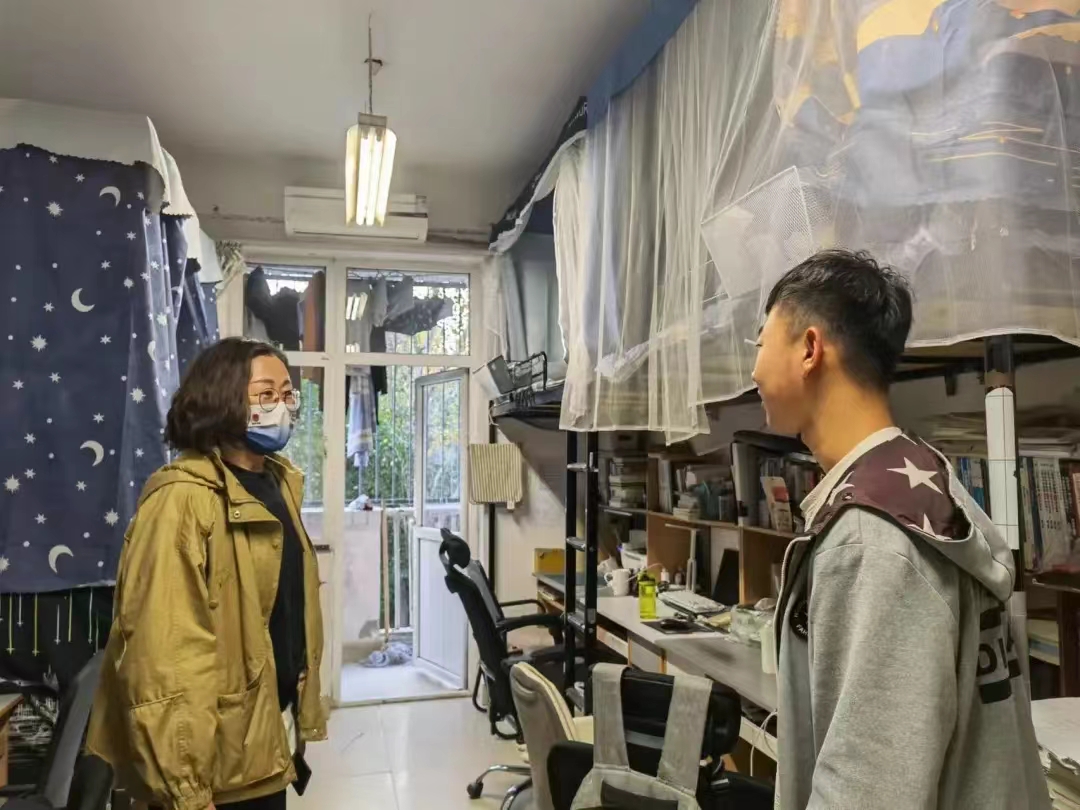 10月24日下午,物理与电气工程学院党总书记张晓玲、院长袁卫及副书记、副院长权轻舟深入学生宿舍走访并宣讲中国共产党第二十次全国代表大会精神,关心学生的学习情况以及疫情期间的生活状态。