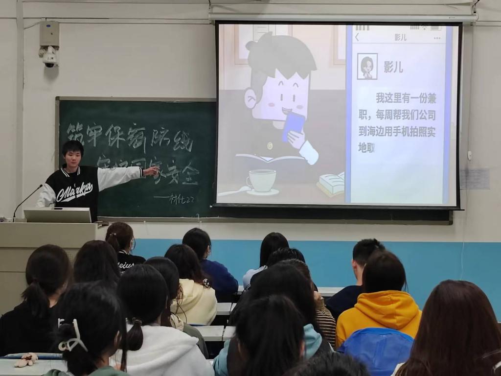 该院以班级为单位组织观看“提高警惕,防范网勾”动画宣教片,并组织讨论交流。此次宣教片分别从容易受骗人群、不法分子的诱骗手段、诱骗背后的目的以及进行举报的方式等方面进行切入。以最贴近大学生实际生活的案例,警醒当代大学生,切勿因一时的好逸恶劳而轻信不法分子的花言巧语。遇到关乎总体国家安全观的问题,我们应该坚持一切以国家利益为上的原则。同时,学生在交流中结合有关反间谍法知识,进一步深入剖析境外间谍组织的本质及特征。同时,积极发动学生向自己周围的人进行宣传,争当国家安全知识的义务宣传员。