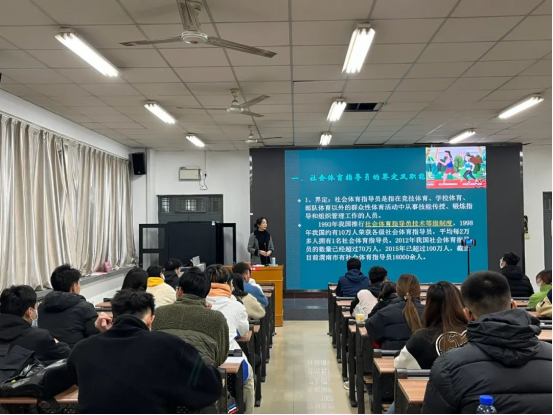 仵晓民详细讲授了综合竞赛的管理与组织,分别赛前、赛中、赛后给同学们做以细致阐述,并分享了自己多年来的工作经验,告诉同学们开展体育竞赛一定要具有可行性。