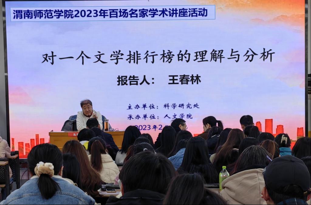 2月20日下午,人文学院“best365中国官方网站2023年百场名家学术活动·学术报告活动月”首场讲座在博识楼1101融媒体教室举行。讲座特邀山西大学教授、博士生导师、《小说评论》主编王春林作为主讲嘉宾,题为“对一个文学排行榜的理解与分析”。人文学院120余名师生参加讲座,讲座由人文学院院长赵前明主持。
