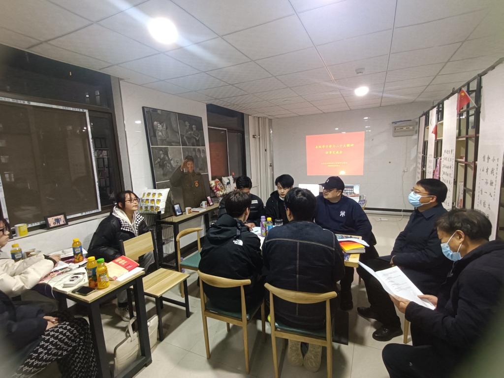 殷晓克主持本次分享交流会,并与大家分享了学习党的二十大精神的感悟和体会。并从党的二十大主题和主要成果、过去五年的工作和新时代十年的伟大变革等方面,对党的二十大精神进行了分享交流。分享期间,他结合专业学习和思政教育,引导在场师生坚定信念、永葆初心,为捍卫党的崇高事业而不断努力。陈进卫结合党的二十大精神学习谈了切实体会。他指出,我们要在全面学习、全面把握、全面落实上下功夫。认真领悟党的二十大提出的新思想、新判断和新部署、新要求,深学细悟,从党的二十大精神中汲取思想伟力。在场的各位师生分别做了分享,并谈了各自体会,一致表示,将着力在全面学习、全面把握、全面落实上下功夫,切实把思想和行动统一到党的二十大精神上来。