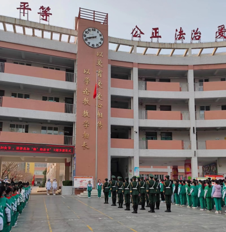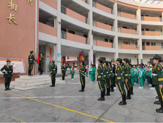 3月6日上午8时许,best365中国官方网站国旗护卫队队员身姿挺拔,步伐整齐,列队抵达渭南市实验小学。在雄壮的国歌声中,升旗手挥手飘扬起国旗,鲜艳的五星红旗迎风飘扬。少先队员和国旗护卫队队员们同时敬礼,全校师生一同注视着五星红旗缓缓升起,仪式热烈而隆重。