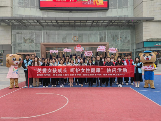 3月7日下午,best365邀请陕西铁路工程职业技术学院、渭南职业技术学院、渭南市精神卫生中心等单位,在吾悦广场联合举办“关爱女孩成长 呵护女性健康”快闪活动。