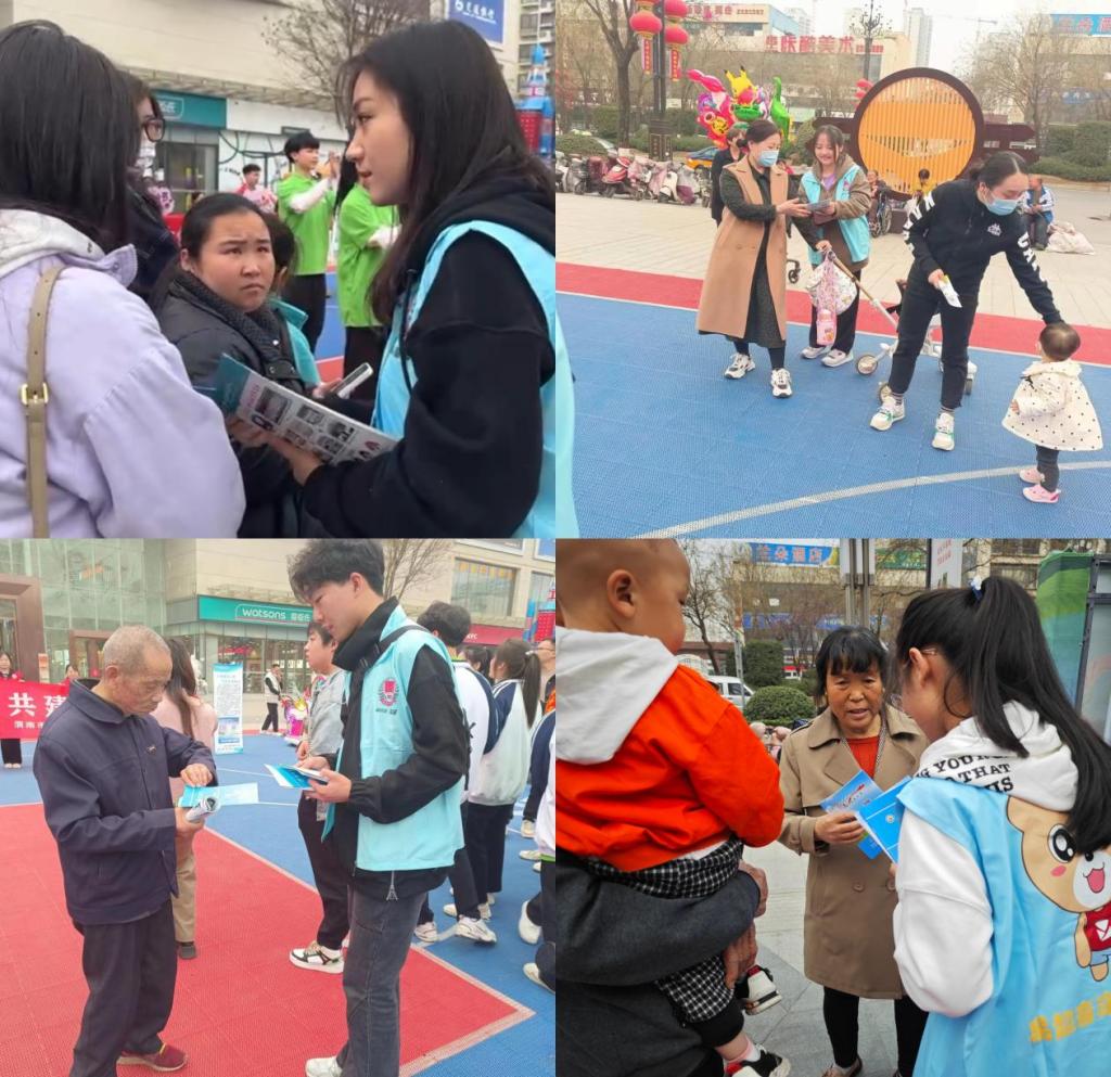 在表演过程中,四家单位志愿者向围观观众发放心理健康知识宣传彩页,号召大家关爱女孩成长、呵护女性心理健康。