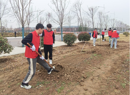 经过大家两个多小时的共同努力劳动,100余株树苗牢牢地扎根在了富平校区的土壤上,连片的新树错落有致、迎风挺立、绿意盎然,眼前呈现出一片生机,为校园增添绿意,守护希望。大家在劳动和汗水中体会植树带来的快乐,在实际行动中诠释了保护生态、师生同行的初心使命。