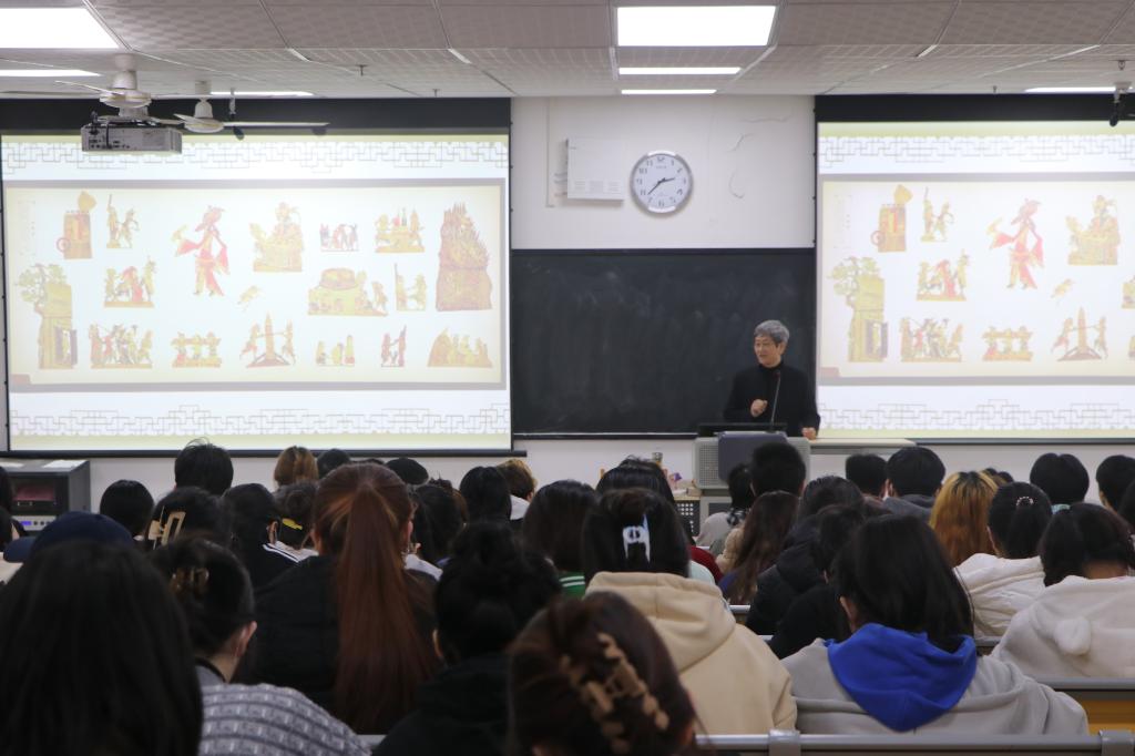 讲座中,薛宏权结合自身传承保护国家级非遗项目华州皮影的实践经验、体会开讲,简要讲述皮影的制作工艺流程、皮影艺术特征、戏剧脚本和故事背景等内容,深入探讨华州皮影的历史传承脉络和创新设计思路。薛宏权指出,“传统艺术的保护与传承不能只守旧,与时俱进的发展与创新才能留住观众的心”。