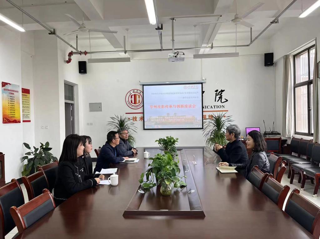 讲座结束后,相关教师代表在富平校区1105会议室参加了座谈会,曹熙斌院长介绍了学院在皮影方面的研究情况,教师代表依次介绍了自己的科研方向,并与薛宏权在皮影风格动画作品创作、皮影艺术理论研究、高级别艺术项目合作申报等方面进行了深入交流。(通讯员 陈栋 审核人 曹熙斌)
