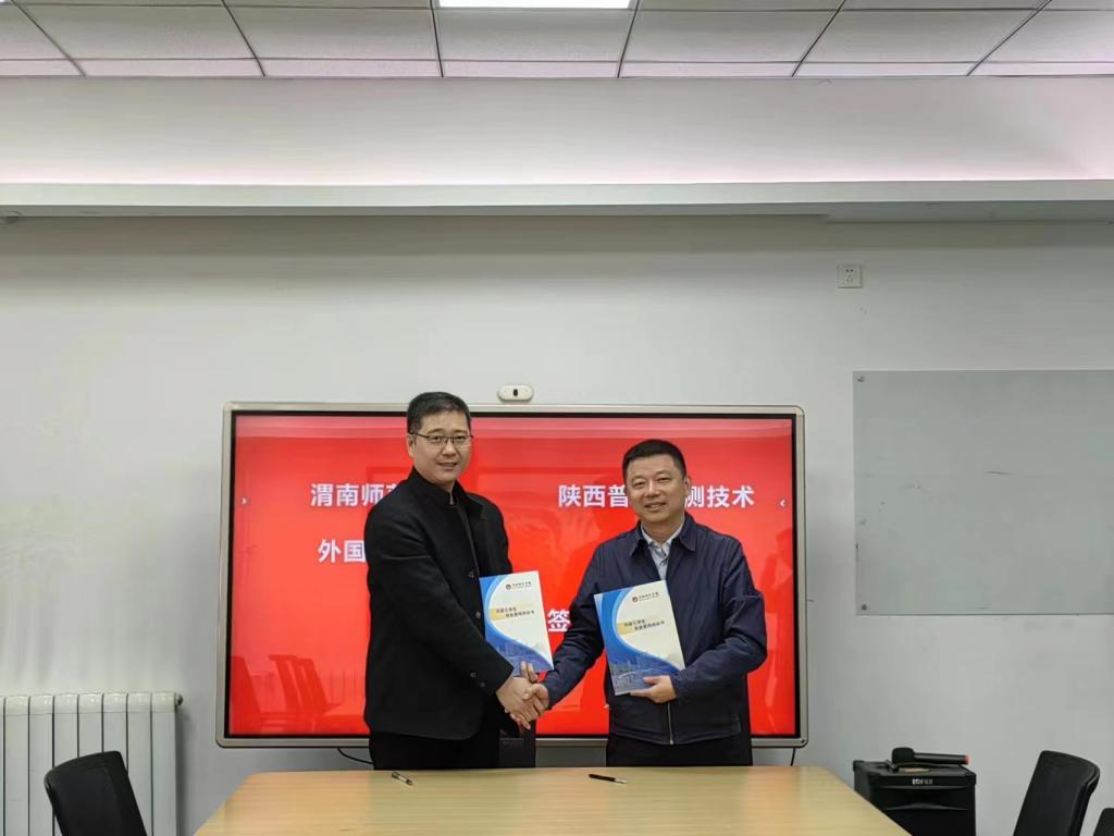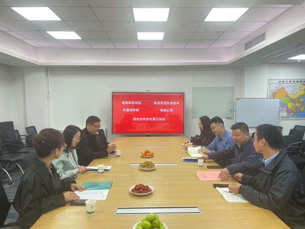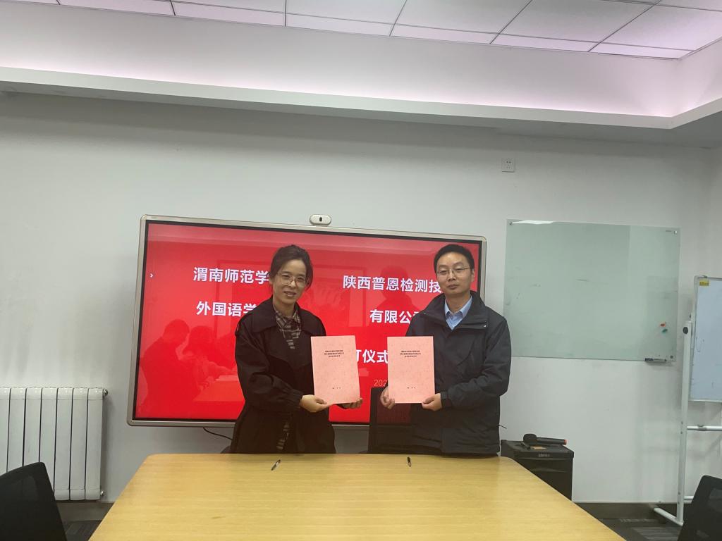 3月24日上午,外国语学院与陕西普恩检测技术有限公司校地合作签约仪式在陕西省西安市国家级民用航天基地众创广场举行。陕西普恩检测技术有限公司总经理张跃军、副总经理李鹏、best365科学研究处计划项目科科长杨春丽、外国语学院党总支副书记、副院长高军强、副院长李圣恩等人出席本次签约仪式。