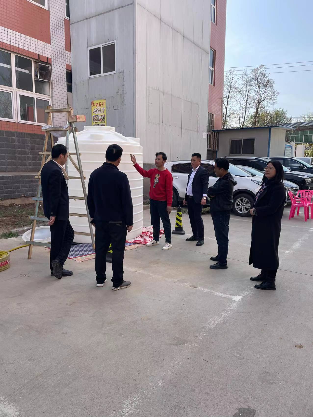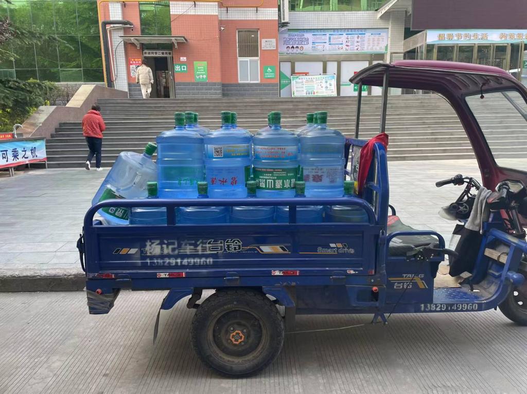 餐饮管理科全体管理人员各楼层经理副经理经现场会协商确立应急三步策略:安排突击小分队应急使用三轮车从一餐给二餐拉水;专人负责一线档口各供餐人员科学流程备餐协调调度;全力推进布防近水点应急供水。全体职工与时间赛跑,与问题和困难斗智斗勇,早上九点实现了临时应急水龙带供水。二餐门口,各档口人员在管理人员指挥下有序接水抬水,大家搬水抬水,相互帮助、珍惜水资源,劳动现场凝心聚力。细节决定成败。二餐一线从业人员将近三百人停水后的厕所卫生至关重要,科室及时告知并紧急引流餐厅厕所使用频次,专人负责处理好厕所卫生,避免了停水造成的系列次生性障碍和问题。主抓近水点应急供水,计划餐厅临时储水供应点从二餐西边停车场就近进入后厨。经多方联系,上午九点半临时储水转供物资进校:5吨食品级塑料储水罐、食品级密封水桶、水龙带、潜水泵,紧急接电、连管子,10点实现二餐储水罐进出水安全连通到位,各楼层应急供水正常有序开展。