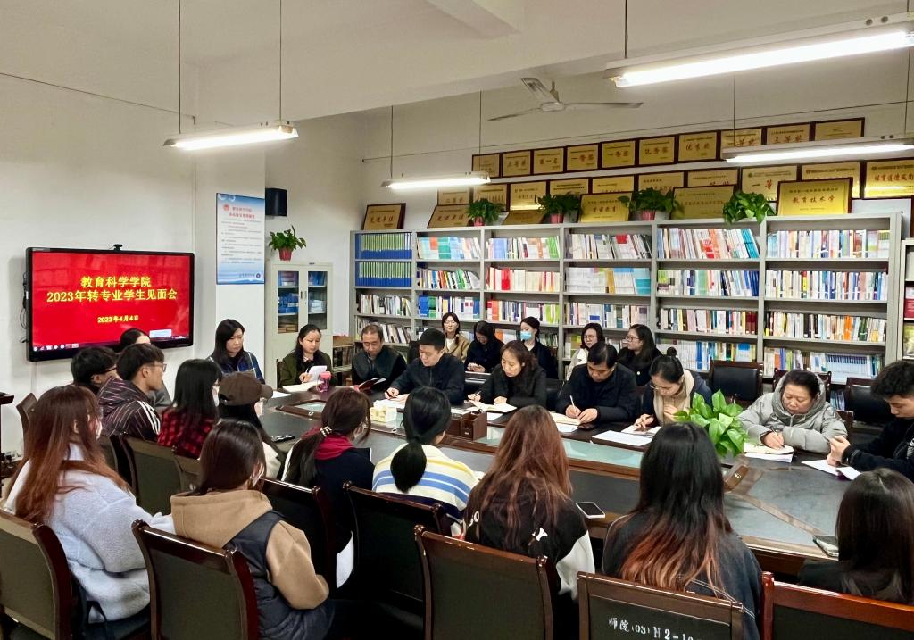 4月4日上午,教育科学学院在2218会议室举行转专业学生见面会。15名转专业学生,学院处科级干部、专业负责人和辅导员参加会议。