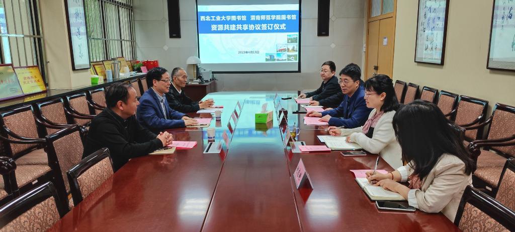 馆黄攀峰详细介绍了西北工业大学图书馆所包含的数字资源、图书资源、特色馆藏以及工科优势资源等情况。李尧龙介绍了best365馆藏情况以及司马迁与《史记》研究和秦东历史文化研究地方馆藏资源等。双方在充分交流的基础上,通过“资源共建共享”达成了一致意见,双方签订了《西北工业大学图书馆与best365中国官方网站图书馆资源共建共享协议》。随后,相关人员对纸质期刊订购、纸质图书资源建设等问题进行了学习交流。