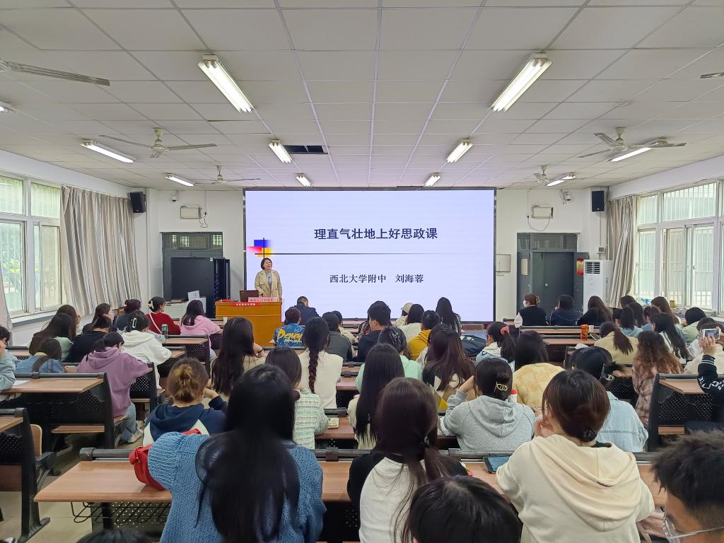 4月13日下午,马克思主义学院邀请国家级教学名师、陕西省“特支计划”教学名师、陕西省特级教师、西北大学附属中学副校长刘海蓉老师作题为《理直气壮上好思政课》的报告。报告会在思政3D虚拟仿真实践体验中心(1101)举行,马克思主义学院党政领导、部分教师、思想政治教育专业2020级学生等100余人参加,由院长张萍主持。